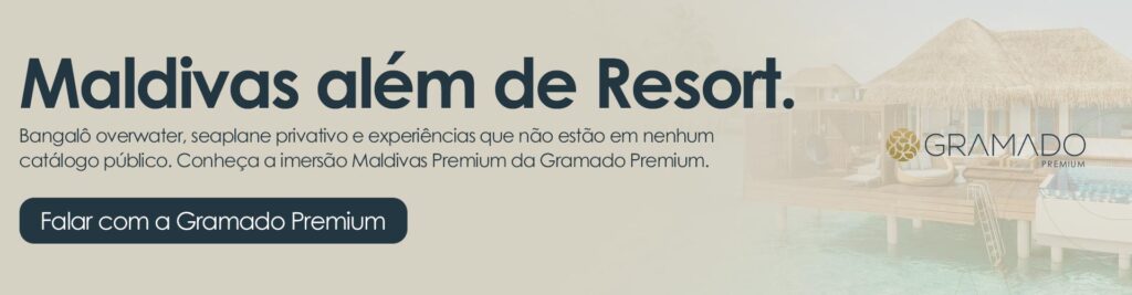 Reservar um resort nas Maldivas qualquer pessoa consegue. O que a Gramado Premium faz é diferente e essa diferença começa antes mesmo de você embarcar no avião.